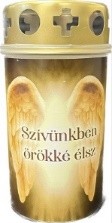 A termékhez rendelték még TEMETŐI MÉCSES ÜVEG Z402E 24,5CM SZÜRKE, VIRÁG MINTÁVAL, EZÜST KUPAKKAL (6) Részletek ACH MÉCSESTARTÓ FÉM FOGANTYÚVAL NIKKEL BEVONAT ÁTTíRT MINTA Részletek TEMETŐI MÉCSES ÜVEG LA21-AN BZ 20,3CM FEHÉR, ANGYALLAL, ARANY KUPAKKAL (6) Részletek TEMETŐI MÉCSESBETÉT WK-30P 4,7CM 6DB (30) Részletek